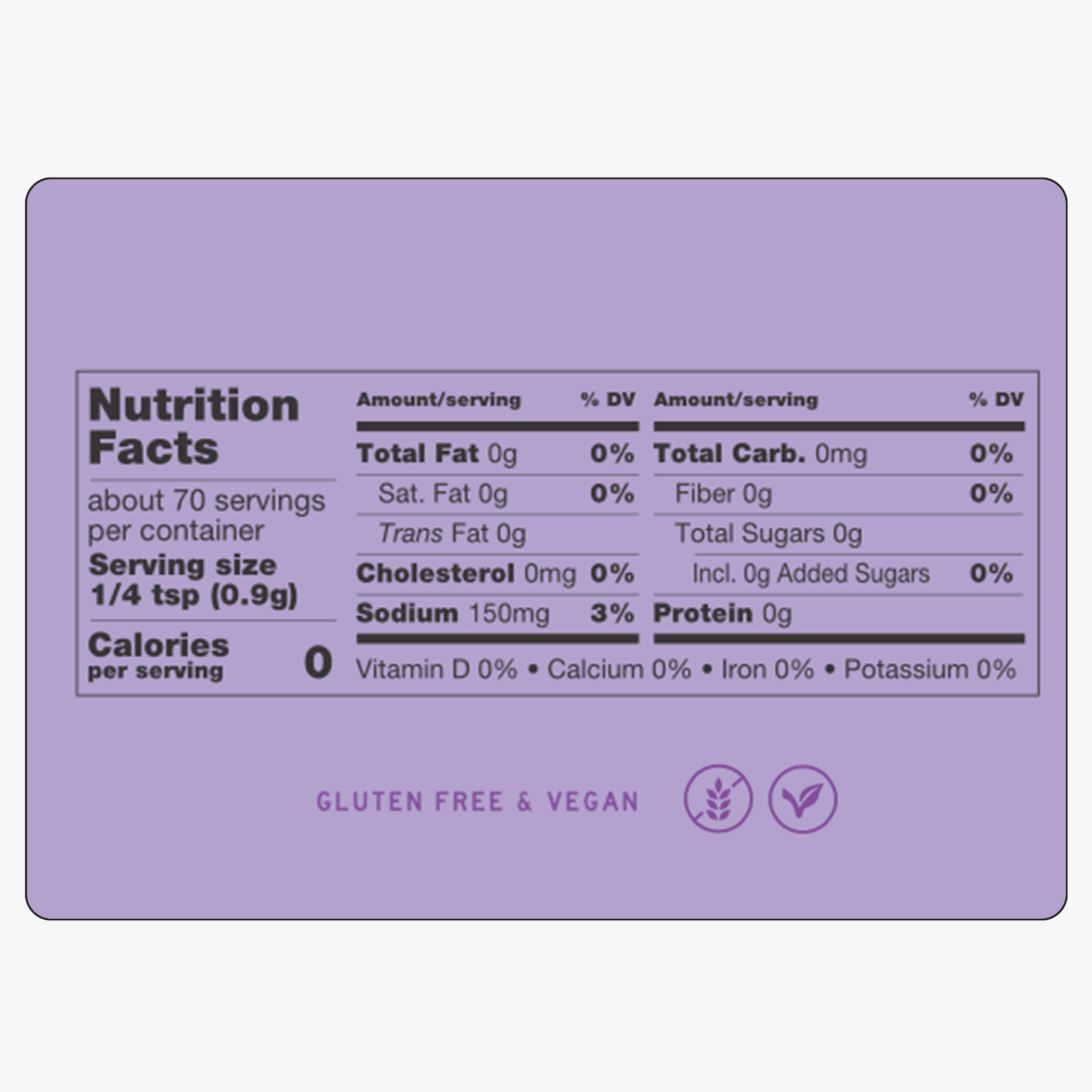 White Sesame Seeds, Black Sesame Seeds, Scotch Bonnet Pepper, Poppy Seed, Garlic, Onion, Salt.